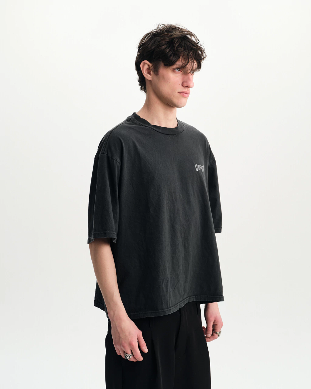Short Sleeve Jersey T-shirt 16:1 with print on the front and back. This item corresponds to size guide number 2. The model is 1.88m tall and is wearing size M.