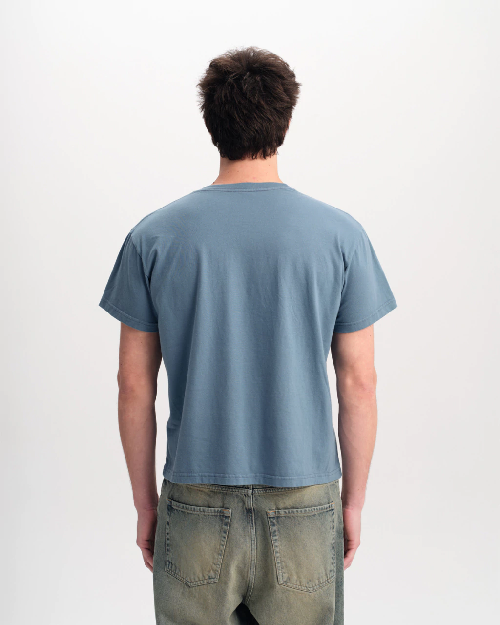 Remera Manga Corta. Estampa en el frente, posee un lavado que realza y suaviza la tela. El modelo mide 1,83 usa talle L.